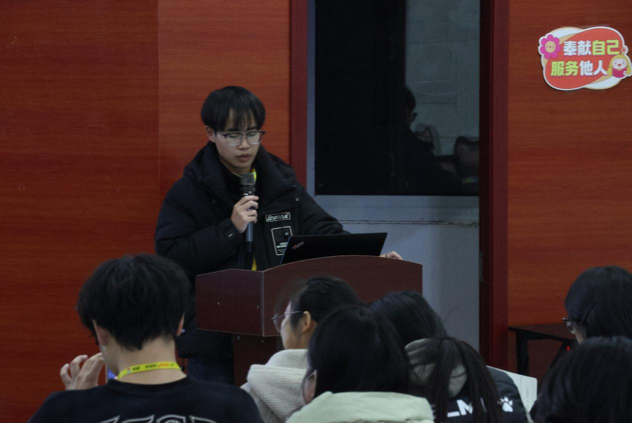 会议上,站长团成员蒋泽迟围绕值班纪律、期末安排和实习生考核进行详细说明,接着各部门部长依次上台汇报本月各部门工作情况,祝愿期末一起奔赴理想的目标。