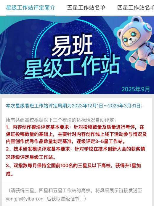 近日,教育部易班发展中心公布了2024年度全国高校星级易班学生工作站评选结果,我校易班学生工作站荣获“全国五星级易班学生工作站”称号。